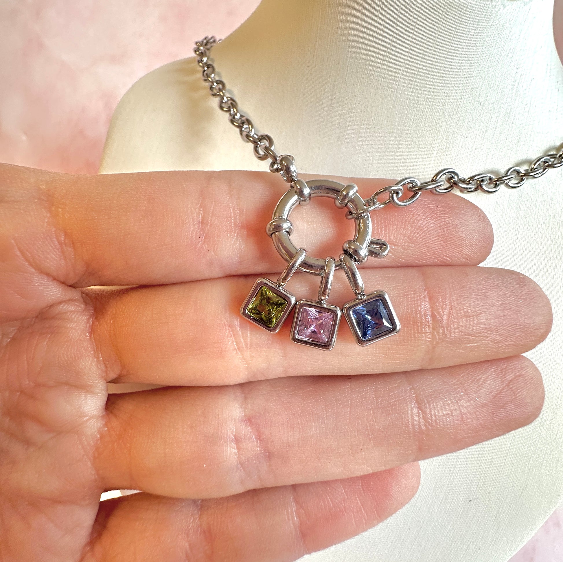 Comes standard with One selected birthstone charm. + (£5) each additional stone.