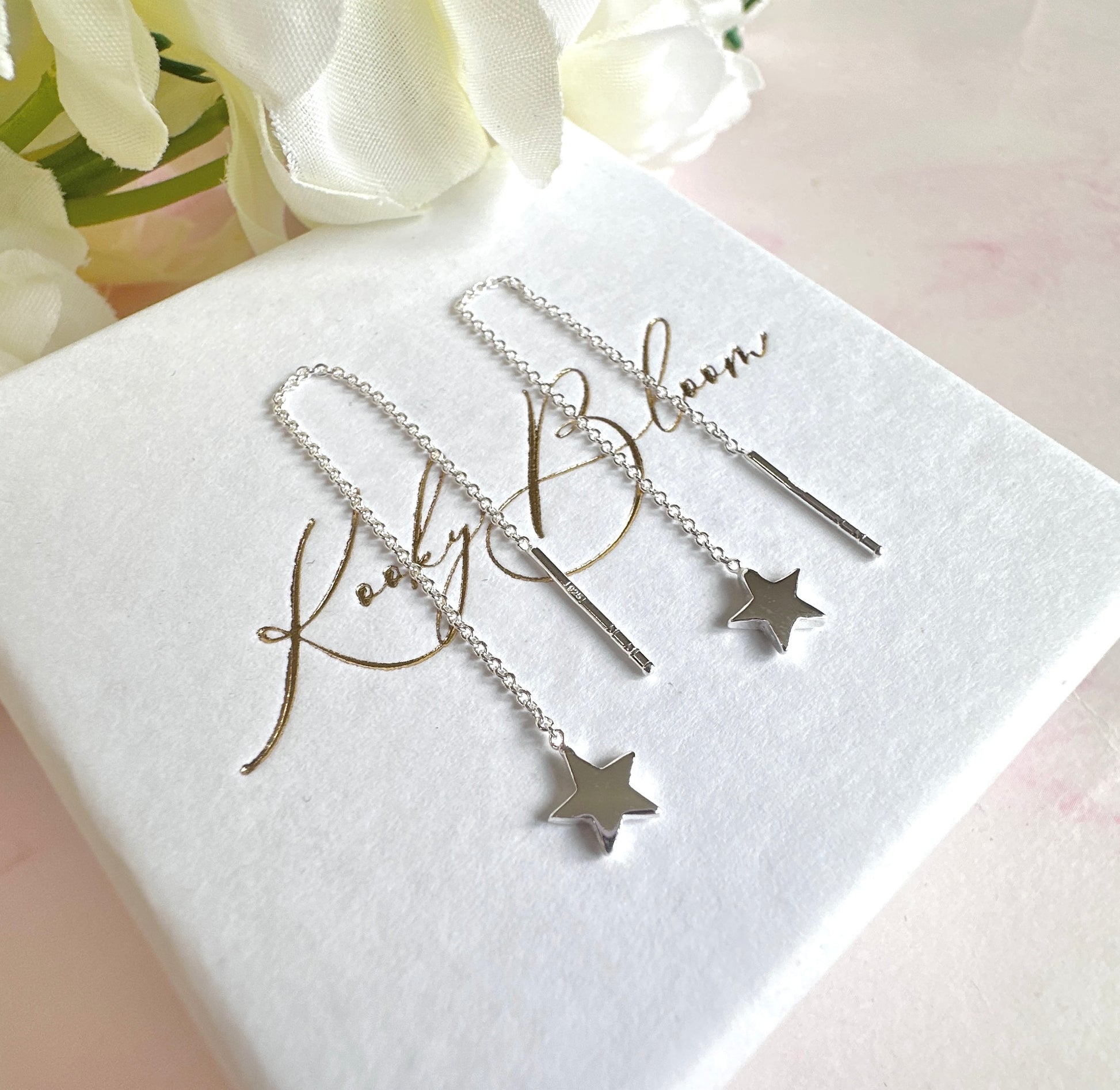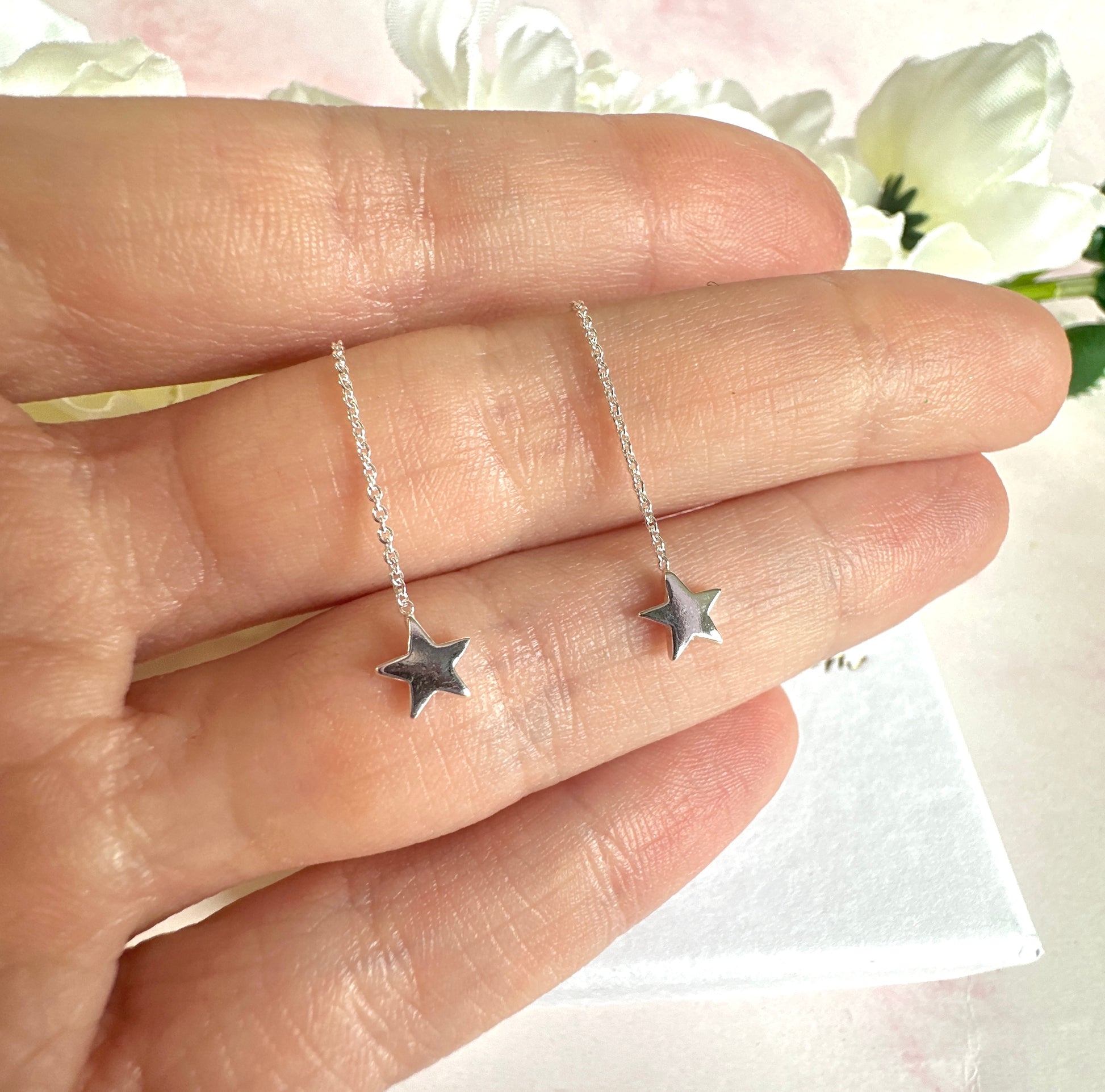 925 sterling silver Star thread through earrings.