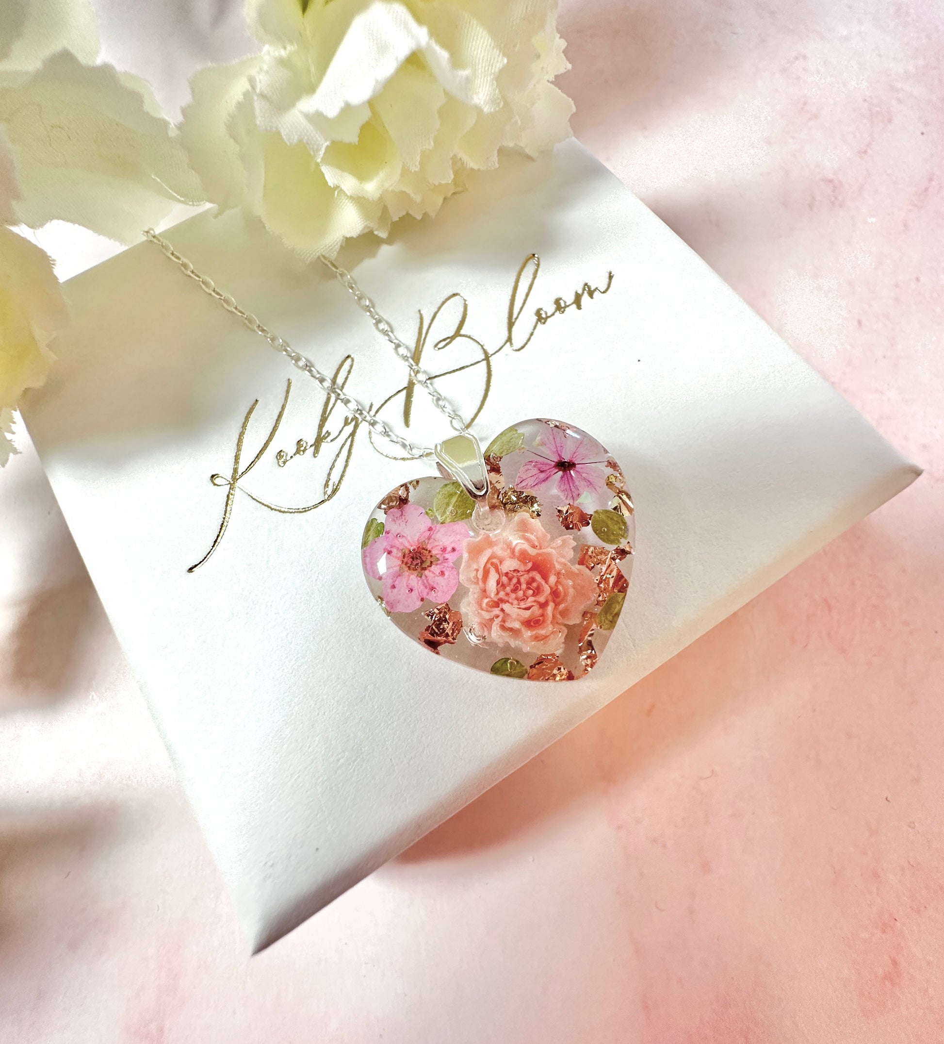 Blush pink blossom Silver Heart necklace.