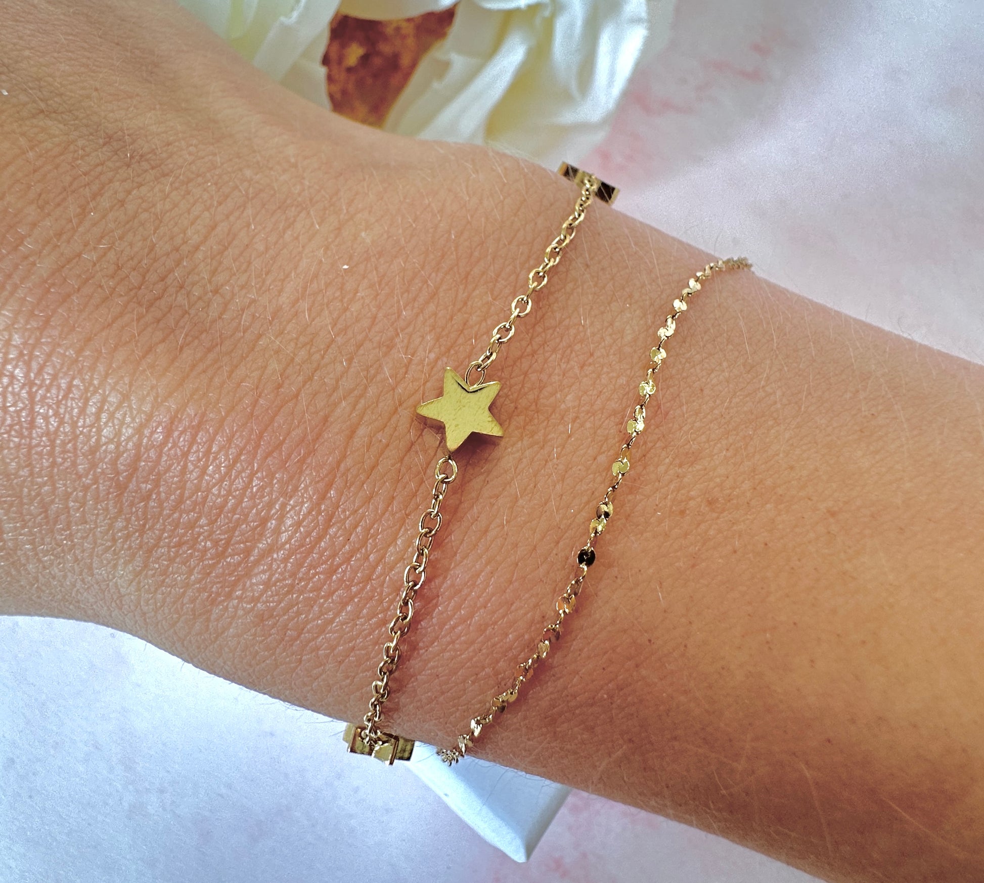 Gold Star layered bracelet.