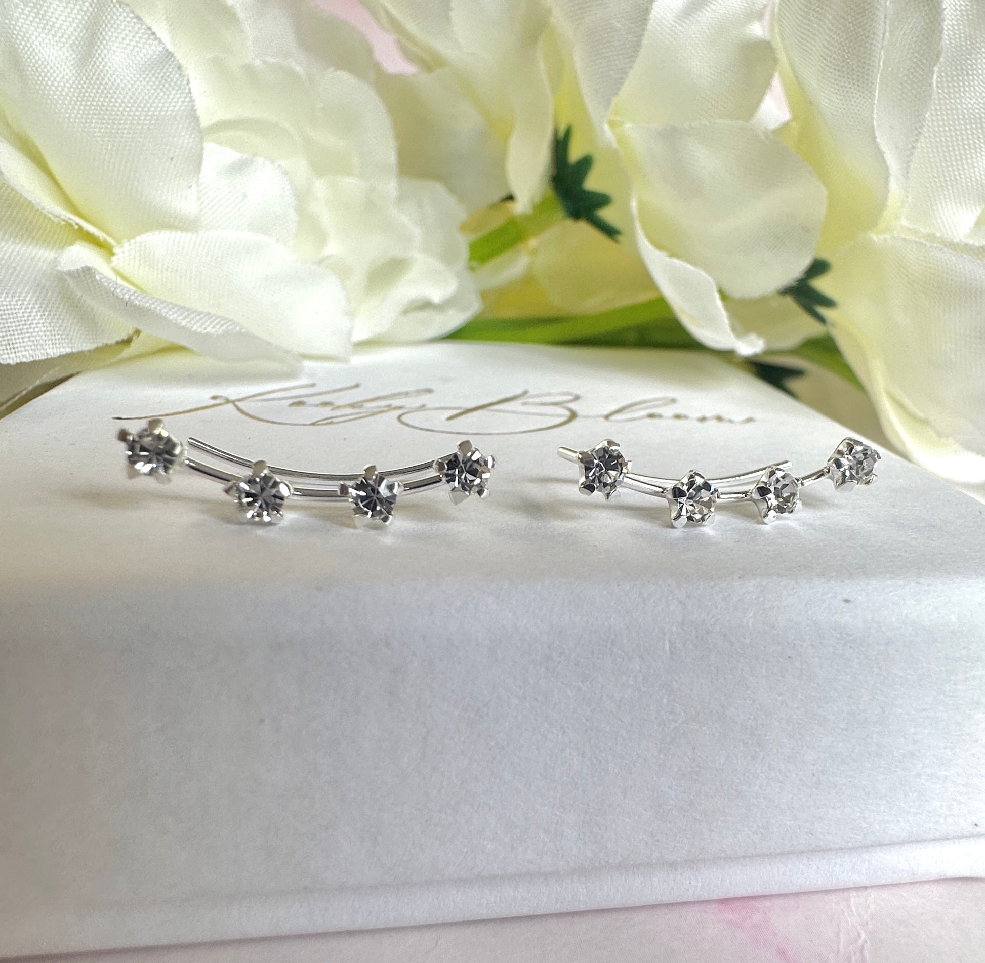 The long post or back pin inserts into the piercing. Then gently squeeze the pin so it is pressed firmly against the ear to hold it securely in place.