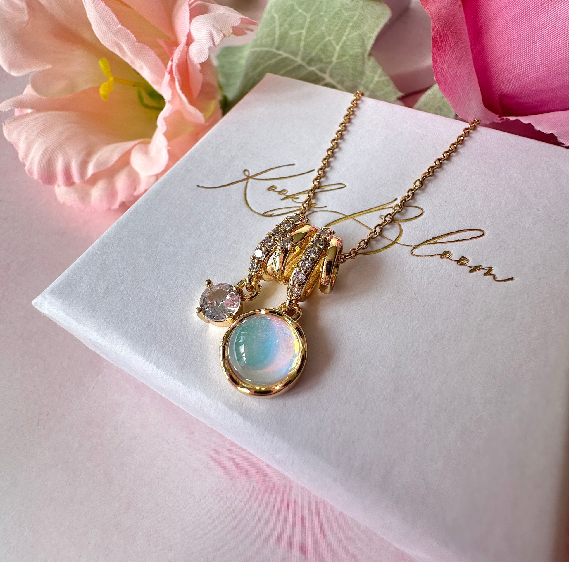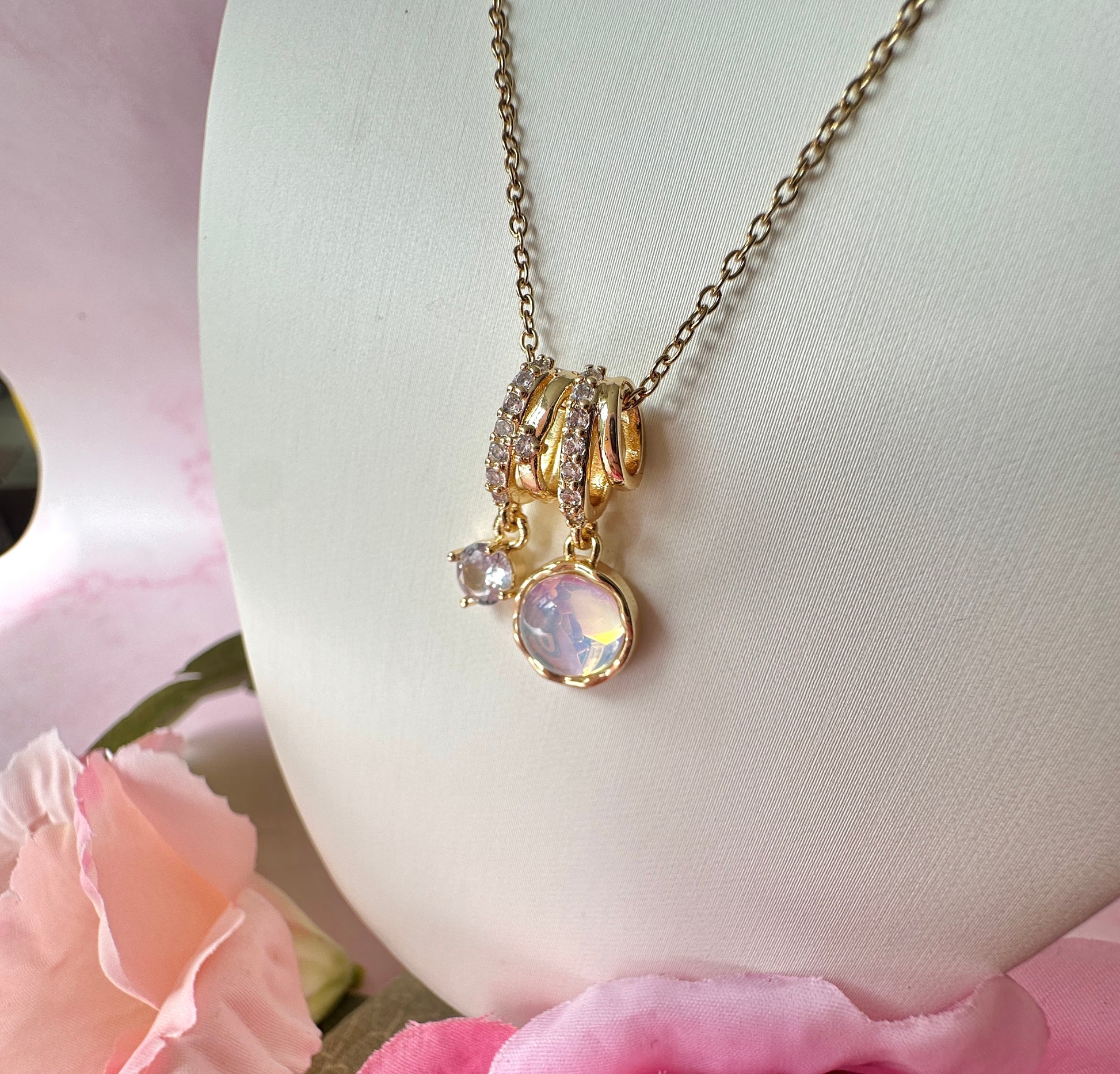 Gold opalescent cz charm cluster Necklace.Gold , stainless steel - 18”