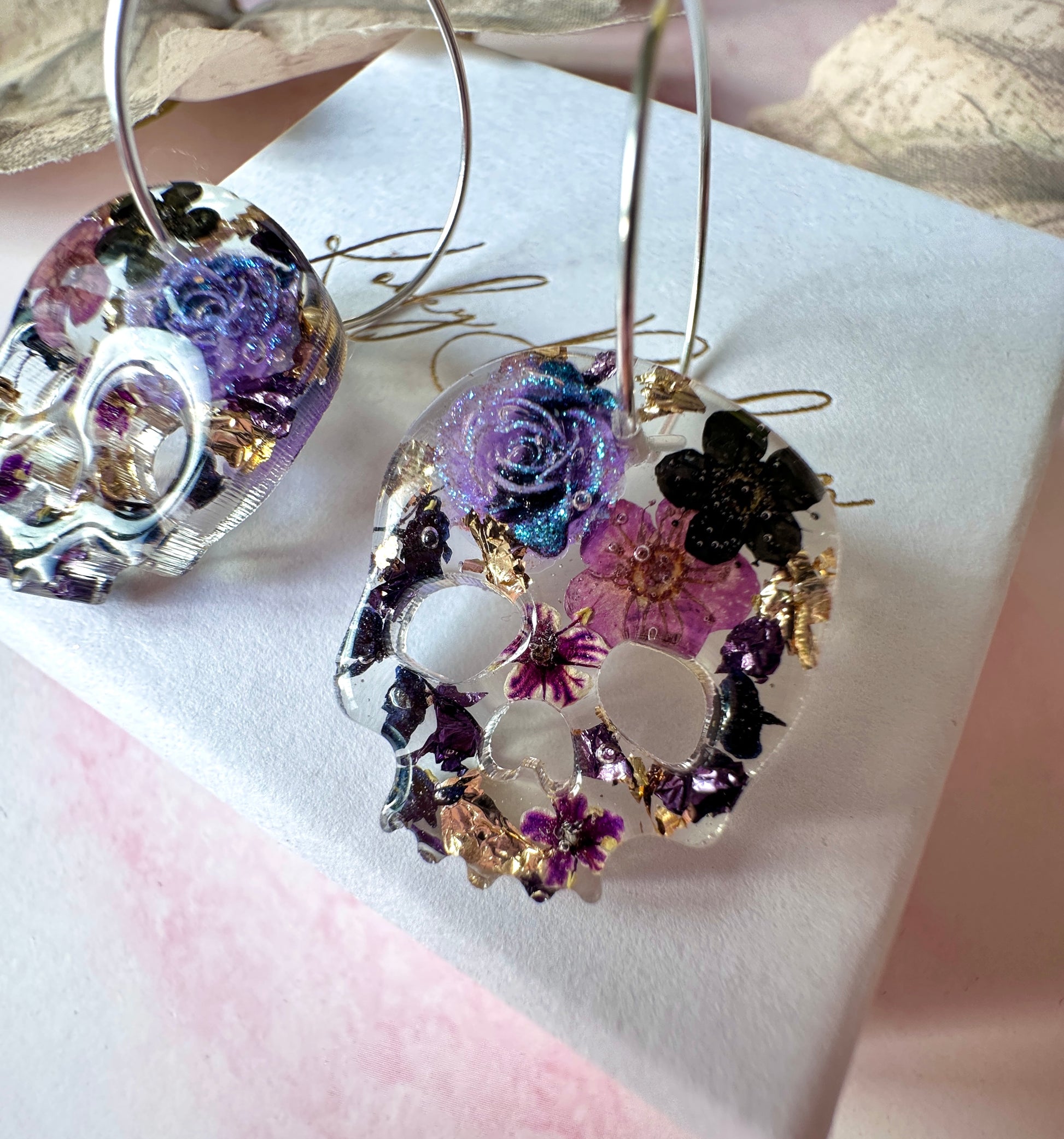 Nightshade flower Skull earrings.