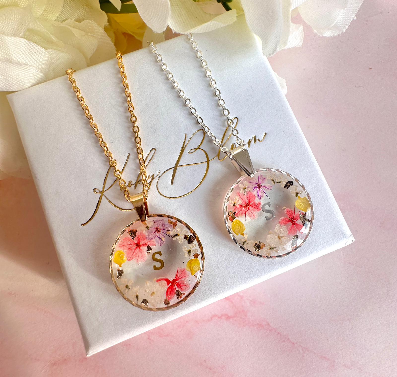 Pendants may differ due to being handmade using real natural flowers.